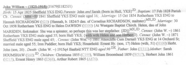 LISTER, John Head Married M 65 1846 Manager Lloves Yorkshire Sheffield