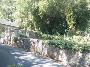 406 Not much to see of Lot 3 - just the wall and trees where (the top gennel