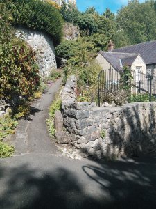 between the 2 gates. Think the wall will date back to The Lees - it is well