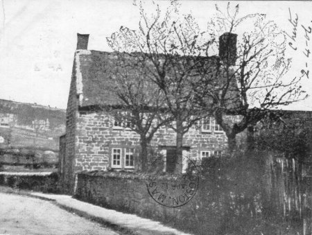 Posted 1906. Slate roof, no chimneypots or downpipe, 4 orchard trees.