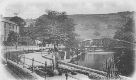 Posted 1903. Jubilee Bridge, Matlock Bath. A cleaner climbs a ladder