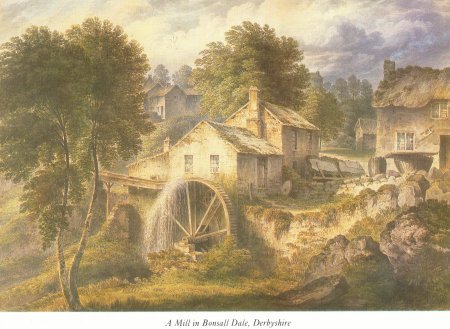 overshot mill wheel, from a print by John Glover 1767-1849.