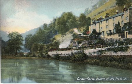 There was no proper through road as such until the Cromford/Grange Mill/Newhaven Turnpike was constructed in 1804, apart from Gell's road from his lead mines in his private liberty at Griffe Grange (otherwise known as Bret-Griffe) down to Cromford. Somewhere amongst all my records I've got the date of closure of the road as a turnpike, but it's not handy. This turnpike met the Nottingham/ Newhaven turnpike (1759) near Pikehall, this latter turnpike came from Nottingham via Alfreton, Matlock (down Steep Turnpike), Matlock Bridge, Snitterton Road (the hill out of Matlock being known then as "Smithy Hill" because of the blacksmith's forge situated on it), Snitterton ale house (where extra horses were attached depending upon the amount of wheels and weight of the carriage to pull the carriage over Oker Hill), Wensley Hill, Winster (extra horses attached to pull up West Bank to the Miner's Standard), Elton Common, Pikehall and finally Newhaven to catch connecting coaches. After the present road (now the A6) was blasted through Scarthin, Cromford in 1815 which thus opened up the road through Matlock Bath to Matlock (it was a cul de sac until then), routes then became more accessible and less traffic used the Nottingham/Newhaven turnpike. Then came the railway which took apart from local, most of the traffic. Some references for this information are:- Peakland Roads and Trackways by A. E. Dodd and E. M. Dodd (2000), Lead and Lead Mining in Derbyshire by Arthur H. Stokes, F.G.S. and Lead Miner's Heyday by Ron Slack (2000). I'm quoting from the Bonsall Map "Business in Bonsall" section for the origin of the name Viyella. "In 1867 Thomas Else of Matlock built a cotton mill on the site of a cornmill formerly owned by the Gell family, the Via Gellia Mill was taken over by Wm. Hollins & Co in 1890 and it was there they developed 'Viyella' yarn (a corruption of Via Gellia)". Incidently I don't know if you've seen the Bonsall Map but I contributed the geology and leadmining section. I don't know if you know (looking at the photo) but as soon as one enters the Via Gellia from Water Lane, one is in Bonsall parish. Just off to the right of the photo is a small building which I think was the toll house of the turnpike, it is clearly shewn on the Tithe map (1848) and Schedule (1846) to be in Bonsall. Bonsall brook forms the parish boundary, so Middleton parish is to the left of the mill pond, Cromford parish behind the photographer and looking straight ahead is all Bonsall parish. The main road is seen just above the mill pond and Chapel Lane the steeply rising track above the Via Gellia on which the row of cottages is built used to be the only road into Bonsall from Cromford (entering Bonsall at Town End and the church) until another road was blasted up from Bonsall Hollow by lead miners who were paid in ale for their services in 1736. That road is now known as the Clatterway, but on the Census returns of the 1800's it is called the Latterway, which to my mind makes better sense, as it was a second or latter way into Bonsall. A descendent of the Ferne family a Mrs.Turnor was one of the people who contributed to the cost. Hope this information helps, and that I've not bored you with it. I didn't send it to DerbysGen site as I thought it perhaps too long.