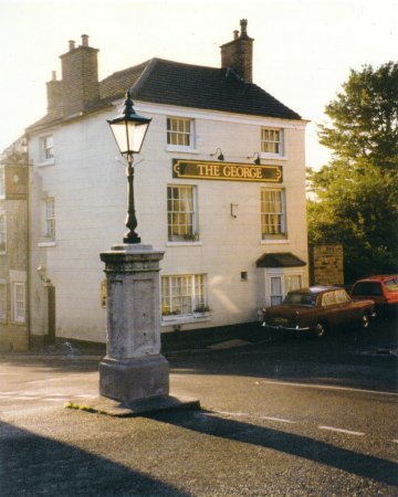 "The George" in Coldwell Street closed about 1998, and is now a private house. Newton's monument is in the foreground. Long an Inn, it was run by Samuel Harley in 1841.