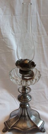 Pewter oil lamp 21" high, Lilybank Hydro c1906,
