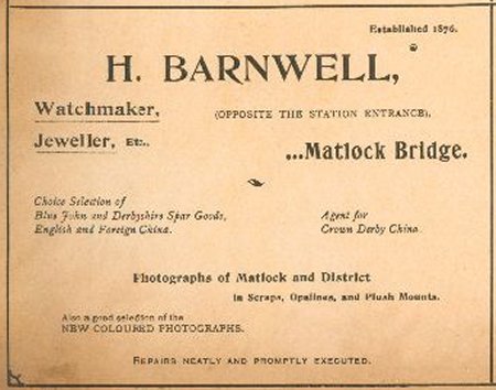 Advert for Henry Barnwell's shop on Matlock Bridge, established 1876.