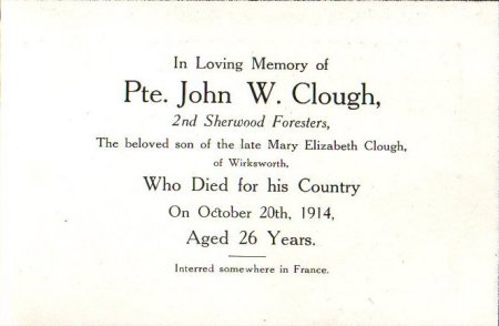John William Clough was born at the town of Wirksworth in Derbyshire in