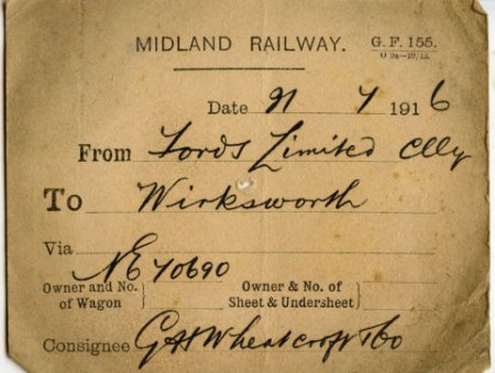 Railway Wagon Label, consigned to G.H.Wheatcroft.