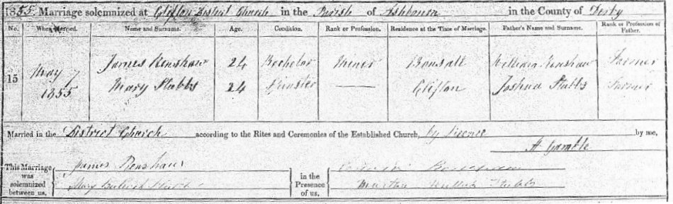 William and Mary Renshaw of Ible in the Parish of Wirksworth. William