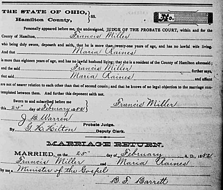 is living in Cincinnati Ohio in the 1840 census - in the house are 2