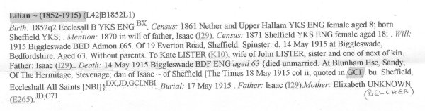 IRONSIDE, Lilian Sister Law Single F 28 1853 Sheffield Yorkshire