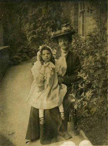 Annie Marie POTTER, nee STREET with Elizabeth (Bessie) POTTER. Taken on St Mary's Gate, Wirksworth (overlooking Noble's Yard) Elizabeth Potter (nee Robinson) was my great grandfather's sister. My great grandfather was Gilbert Pidcock Robinson born at Ashbourne 5 Jan 1842 and died at Manchester 30 June 1894. James Robinson, (see X242), was his half brother. James' mother was Mary Haycock. Their father Edward Robinson's first wife. Edward married again to Ann Salt nee Pidcock 7 June 1837 at Ashbourne.