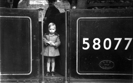 Four year old Geoff Plumb in the cab of Midland Railway 1P 0-4-4T No. 58077