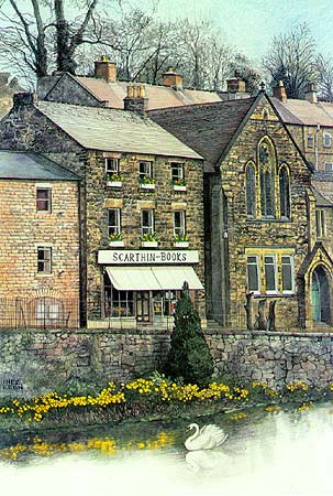 towards Scarthin, Harp Edge and Scarthin Books. The pond, used to
