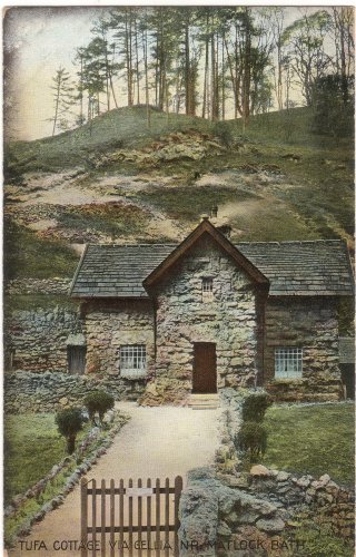 Early in the nineteenth century there were seven mills set at different levels up a two mile stretch of the Via Gellia from Cromford. The trade name Vyella originated from the fabric that was once produced at one of the textile mills in the valley. On the steep hillside, where the Bonsall road meets the Via Gellia, a skull, thought to be that of a mammoth, was discovered at the entrance to a cave. Further up the valley the Tufa Cottage is most unusual, being constructed of tufa rock formed from dissolved limestone which has been re-deposited in water.
