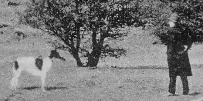 Enlargement. A man and his dog out for a walk.
