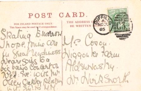 neat circular cancel mark of Duffield 1905. Wiggon Lee Farm