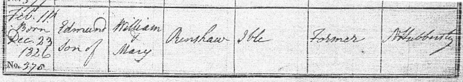 Edward Renshaw, age 14, f.s.! born Derbyshire (Edmund on parish baptism entry)