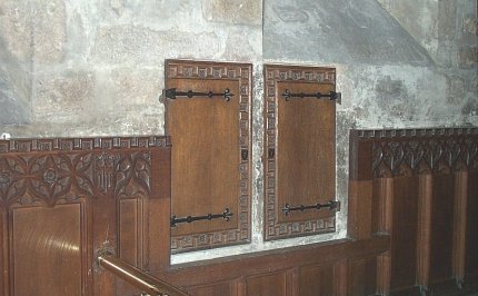 Angela Treweek writes: The 2 "cupboards" have locks on. The shelf inside is also polished. I can only guess this is where the holy wine and goblets would be kept as they are at the side of the Altar Photo taken:11 April 2003 Source: Jayne McHugh, Ontario, Canada View in High Resolution (on CD only) Have any more information about this photo? Please e-mail the author on: